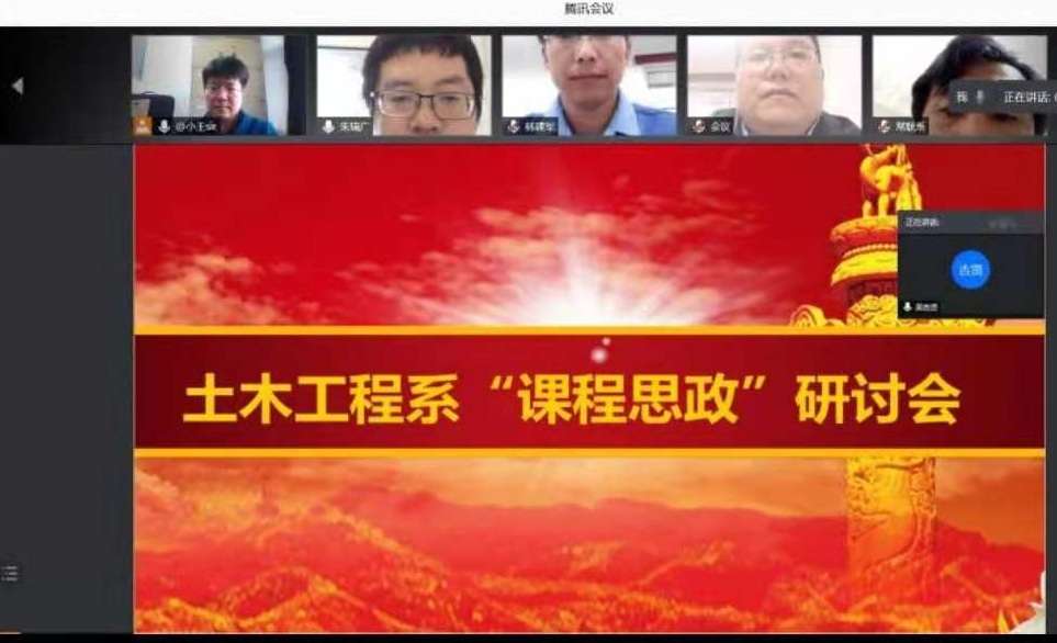 2021年3月18日,采用腾讯会议方式进行了集体备课和课程思政案例库建设研讨。在集体研讨中,大家一致认为深入挖掘思政元素任务紧迫,在培养什么人、为谁培养人、怎么培养人这个重大命题上要把控好大方向。我国在基础建设方面取得了举世瞩目的成就,土木工程类课程可挖掘的思政元素很多,关键在于梳理更好的素材,据此建设更丰富的课程思政案例库。