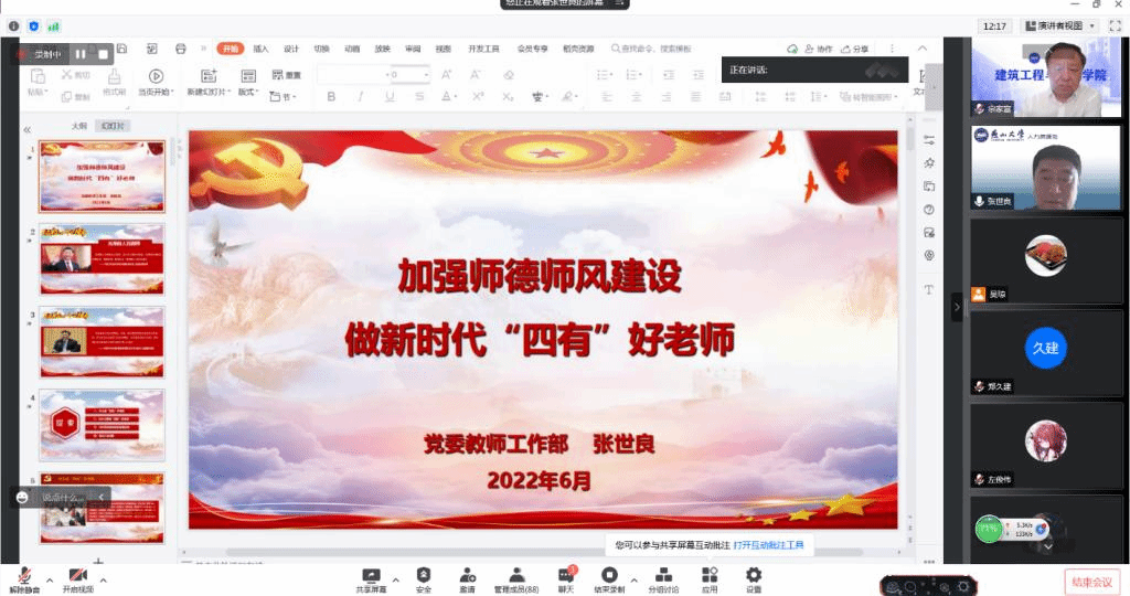 张世良从什么是“四有”好老师、为什么要做“四有”好老师、守好高校教师职业道德底线、身边人身边事四个方面,为师生们进行了生动讲解。丰富的案例、深刻的思考、精彩的讲授,帮助与会师生更好地理解“四有”好老师的内涵,守牢师德师风底线,树立争做“四有”好老师的坚定信念。
