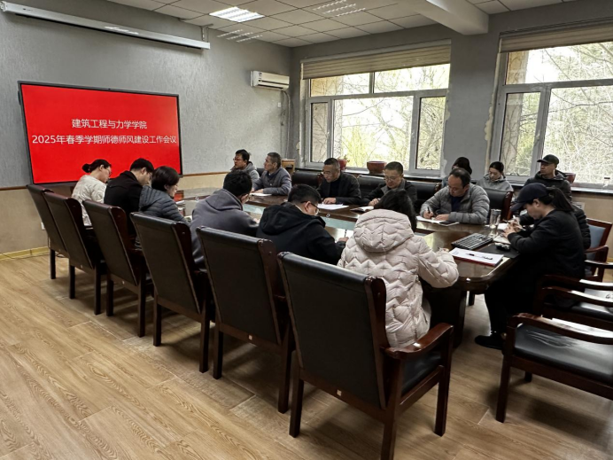 在建筑馆203会议室召开师德师风建设工作会议,学院党委委员、党支部书记及科级干部参加。会议由学院党委书记王继东主持。