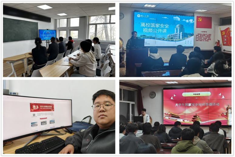 此外,学院党委还积极组织师生学习“千万高校学生同上一堂国家安全教育课”“高校国家安全视频公开课”“国家安全教育大讲堂”等,组织师生参加“全国大学生国家安全知识答题”活动,进一步普及国家安全知识,坚定维护国家政权安全、制度安全、意识形态安全的信念,营造出国家安全人人参与、人人有责的良好氛围。