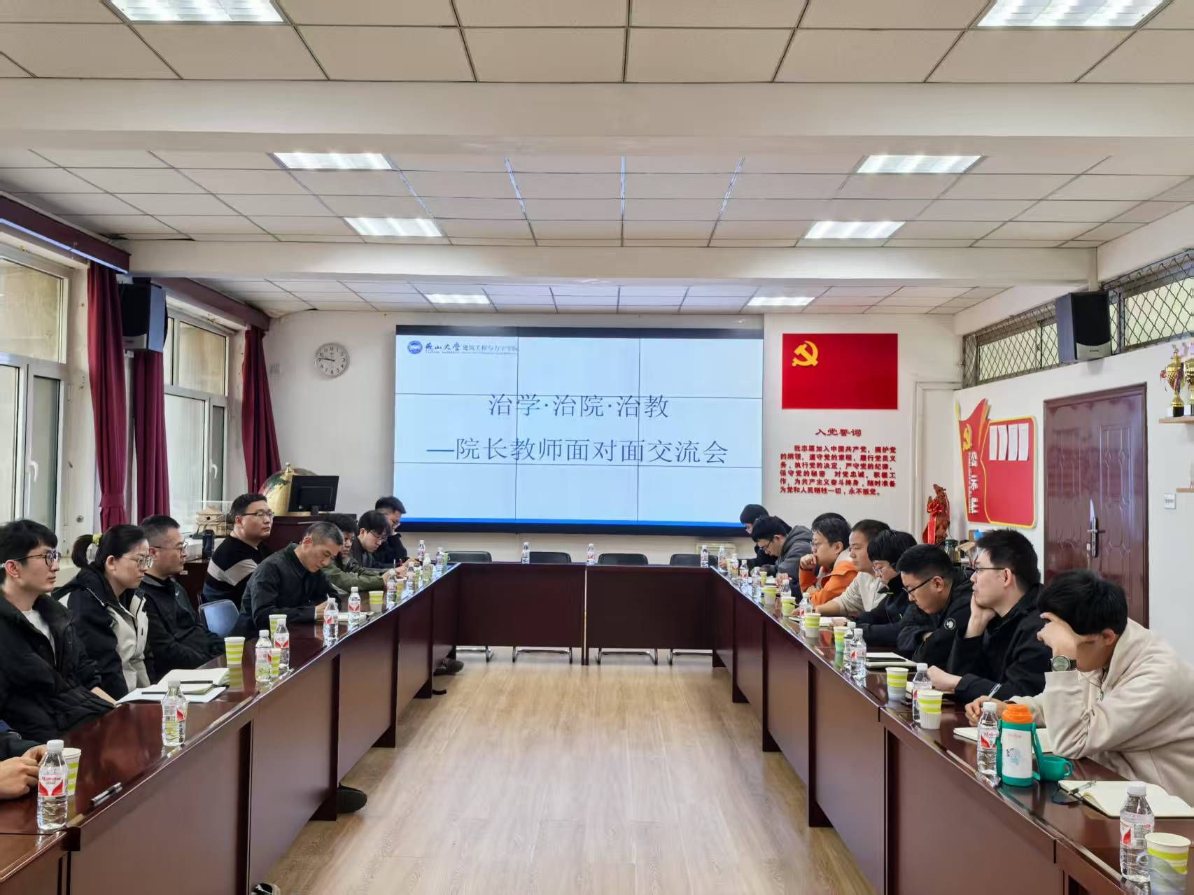 会上,郝院长强调了本次交流会的重要意义,目前,学院正处于爬坡过坎的关键时期,学院必须积极探索创新路径,提升整体实力,才能在激烈的竞争中站稳脚跟,实现长远发展。他鼓励老师们就学院近期出台的职称评审、上岗考核等文件,及个人发展规划、学科建设等方面畅所欲言,为学院发展建言献策。