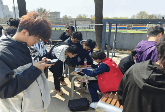4月22日,东校区第一体育场化身安全实践大课堂,在“一球成名”投篮挑战中,参赛者需先回答运动损伤判断题方可获得投篮机会;“速度与激情”接力赛增设急救包扎模拟环节,团队需在冲刺间隙完成三角巾固定演练;最受欢迎的“绳彩飞扬”跳绳比拼将运动心率监测融入比赛规则,参赛者在工作站成员指导下学习科学调控运动强度。活动现场还设置安全知识手册,图文并茂解析常见运动风险,吸引众多同学驻足学习。