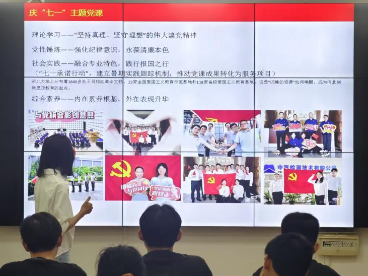 党课实践部分极具创新,以河北大地1800多处不可移动革命文物、23家国家级及118家省级爱国主义教育基地为依托,启动"七一承诺行动"。支部建立暑期实践跟踪机制,推动党课成果转化为服务项目,融合专业特色践行报国之行。青年党员们将奔赴红色热土,用脚步丈量历史,用专业所学助力红色资源保护与活化利用,让"沉睡"的思政资源焕发新时代光彩。