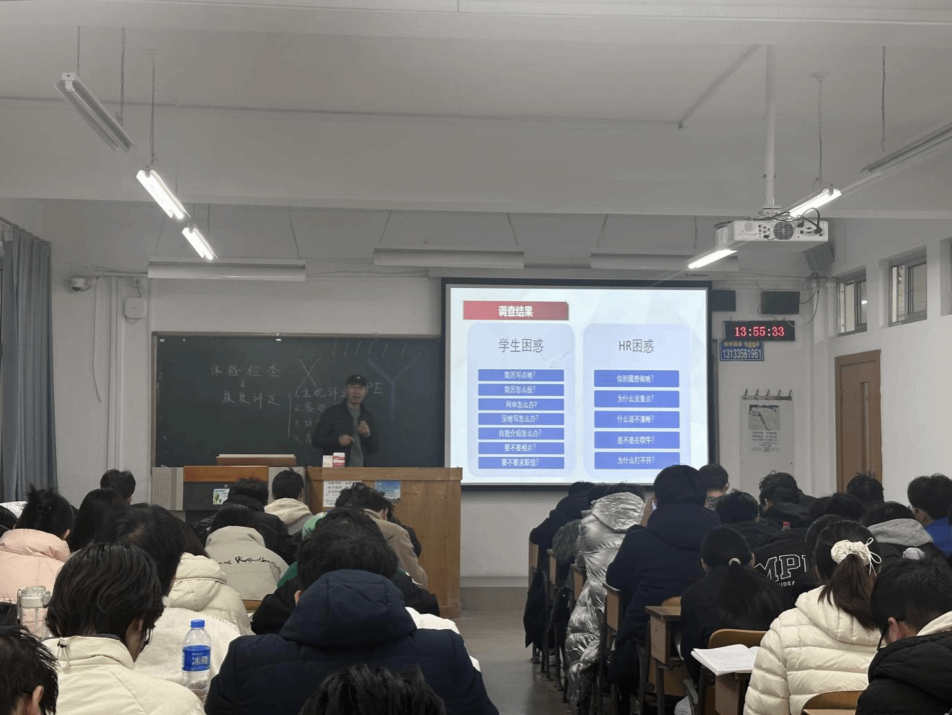 就业指导环节中,聚焦“就业市场需求、简历制作技巧、面试实战攻略”进行干货分享。他分析了当前行业发展趋势与企业用人标准,指出“专业能力、实践经验、沟通协作能力”是企业招聘的核心考察点;在简历制作方面,他通过案例对比,详细讲解了简历结构优化、亮点提炼、语言表达规范等技巧,强调简历要“针对性匹配岗位需求,用数据量化成果”;面试环节,他现场模拟面试场景,与学生互动演练,并针对学生表现提出改进建议,帮助学生克服面试紧张情绪,掌握应答逻辑与礼仪规范。
