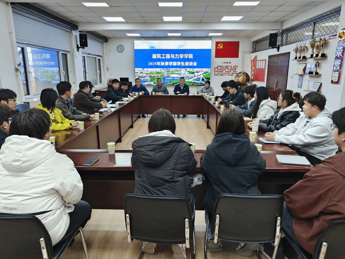学院高度重视此次学习活动,将其作为落实立德树人根本任务的重要举措。院领导班子、系部负责人、辅导员及各专业学生代表在建筑馆211房间举行了启动会暨学生座谈会。院长郝圣旺系统解读了《纲要》出台的时代背景、核心要义与实践要求。他强调,《纲要》作为我国首个以教育强国为主题的纲领性文件,明确了“培养德智体美劳全面发展的社会主义建设者和接班人”的核心目标,青年学生作为教育强国建设的亲历者、受益者和建设者,必须深刻把握教育的政治属性、人民属性、战略属性,将个人理想融入国家发展大局。副院长曹海莹结合学院学科特色与人才培养定位,围绕《纲要》提出的“建设高质量教育体系”要求,详细解读了学院在强化实践育人、推进产教融合、提升人才培养质量等方面的具体举措,鼓励学生以“强国有我”的自觉锤炼过硬本领。
