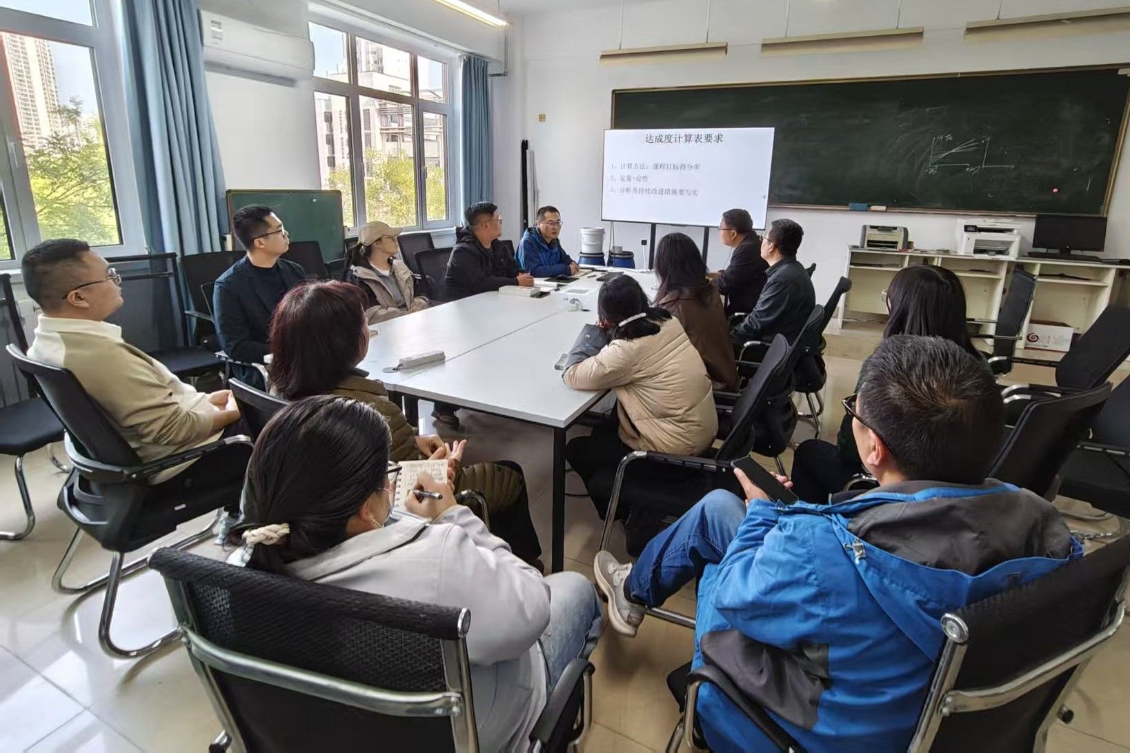 在专题研讨环节,与会教师结合《空气调节》、《流体力学》、《供热工程》等多门核心课程的“课程目标达成及持续改进分析报告”进行了细致评估与深入讨论。会议梳理出当前评价工作中存在的两个突出问题:其一,部分课程考核内容、题型设计与课程目标的支撑对应关系需要进一步改进;其二,针对评价结果所提出的持续改进措施,其针对性与关联性有待进一步加强。
