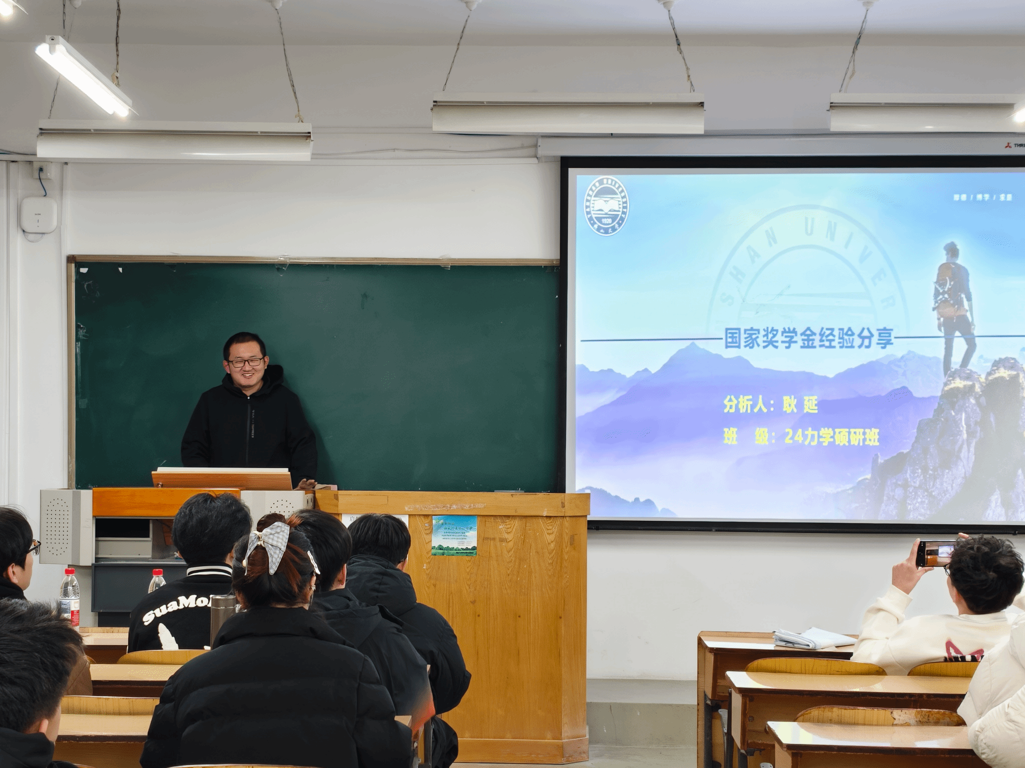 在第一教学楼247教室举办“榜样领航,研途逐梦”国家奖学金获得者交流分享会。活动邀请三位来自不同专业的国奖获得者分享成长历程与科研心得,通过“经验分享+互动答疑”的形式,为在场研究生送上了一场干货满满的学术成长盛宴。