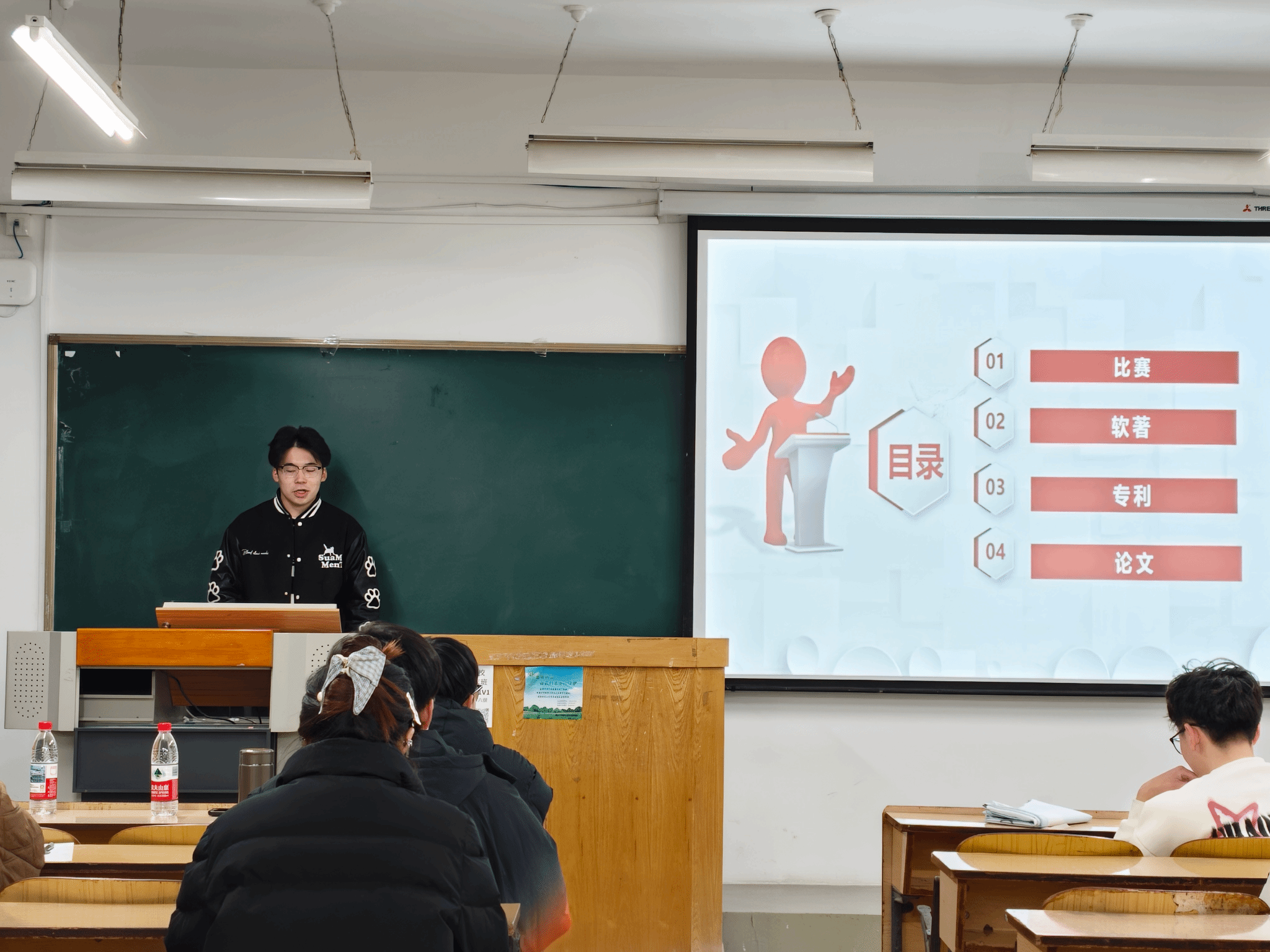 土木工程专业的张驰宇围绕国奖评选核心指标展开分享,他以1篇一区SCI论文、2项授权发明专利,以及美国大学生数学竞赛国际三等奖、河北省挑战杯省级金奖等荣誉为切入点,详细拆解了学科竞赛、软著、专利、论文等科研成果的产出周期、准备要点与长远价值,并结合自身申博经历,呼吁同学们树立长远规划意识,稳步积累学术成果。